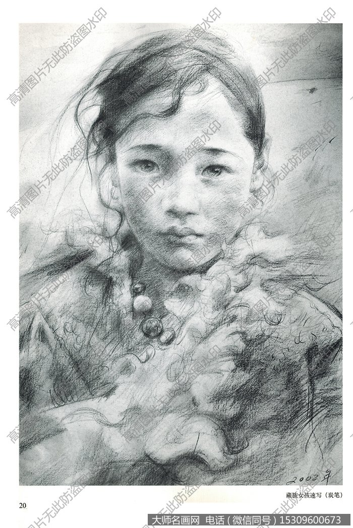 艾轩素描《藏族女孩速写》作品高清下载