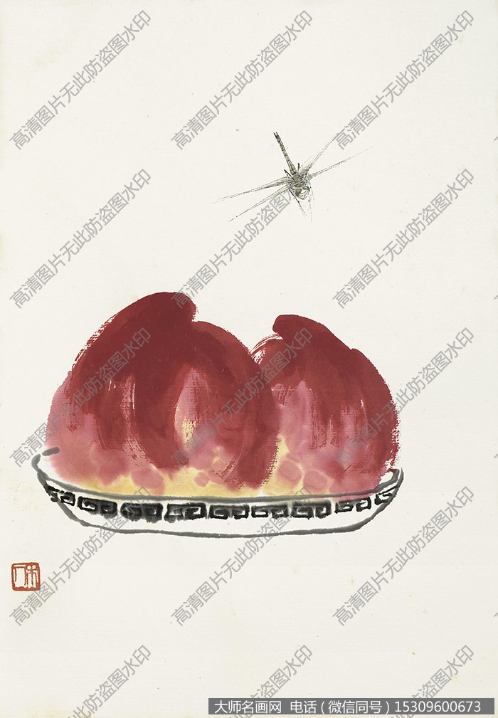 齐白石 动物国画《蜻蜓寿桃》高清大图下载