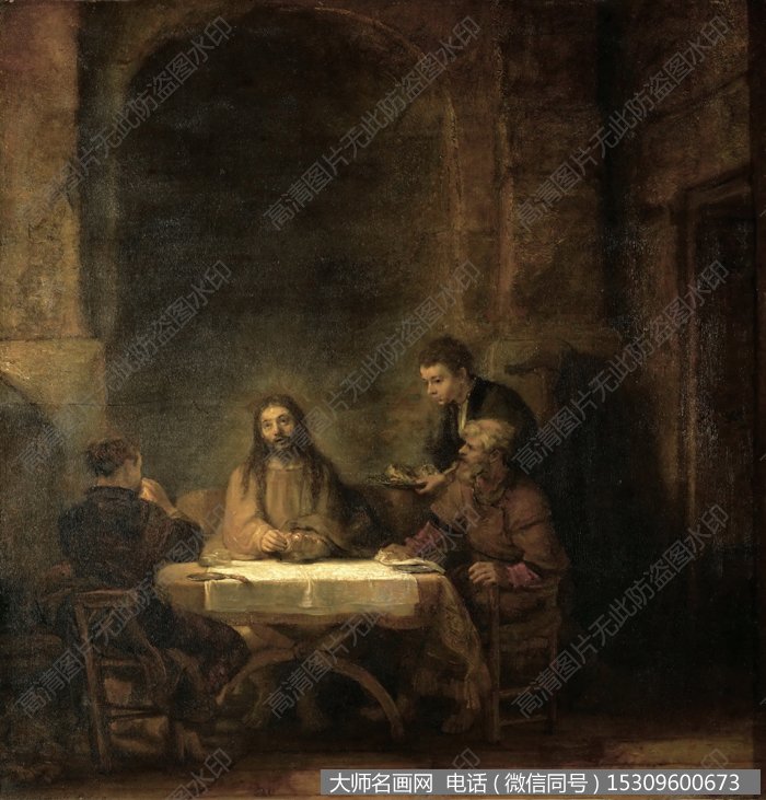 世界名画20 伦勃朗 以马忤斯的晚餐 高清图片下载